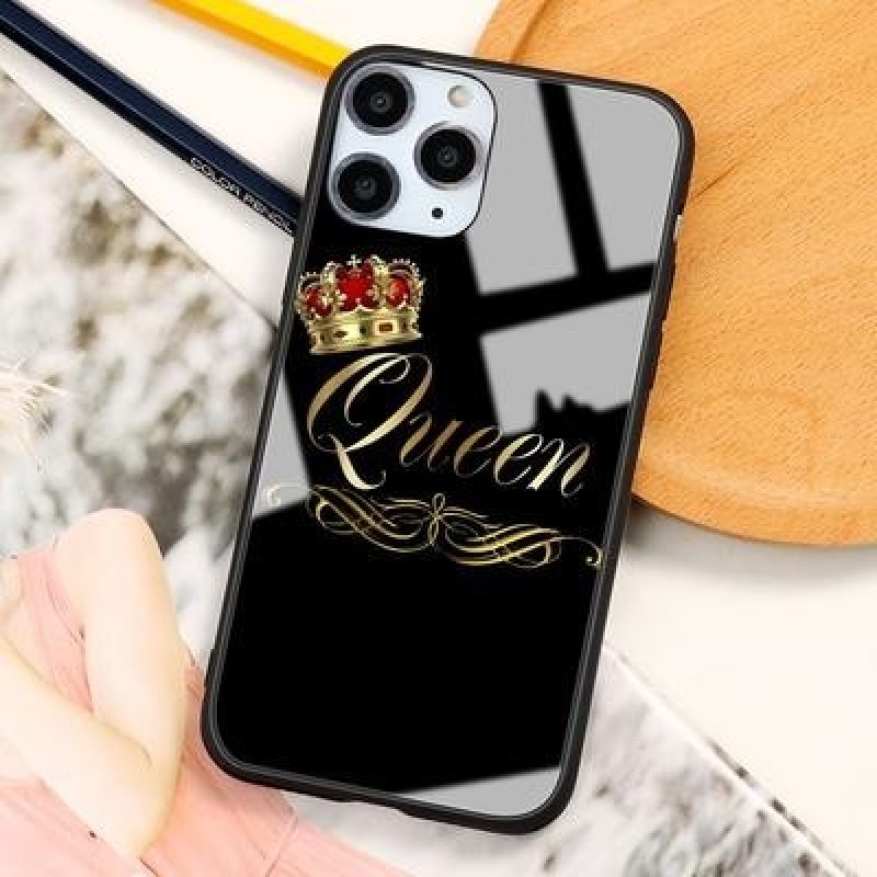 Пара Королева Король Корона Бриллиант Закаленное стекло Чехол для телефона для iPhone 13 12 11 SE 20